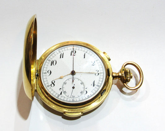 Reloj de bolsillo en oro con cronógrafo y repetidor de minutos