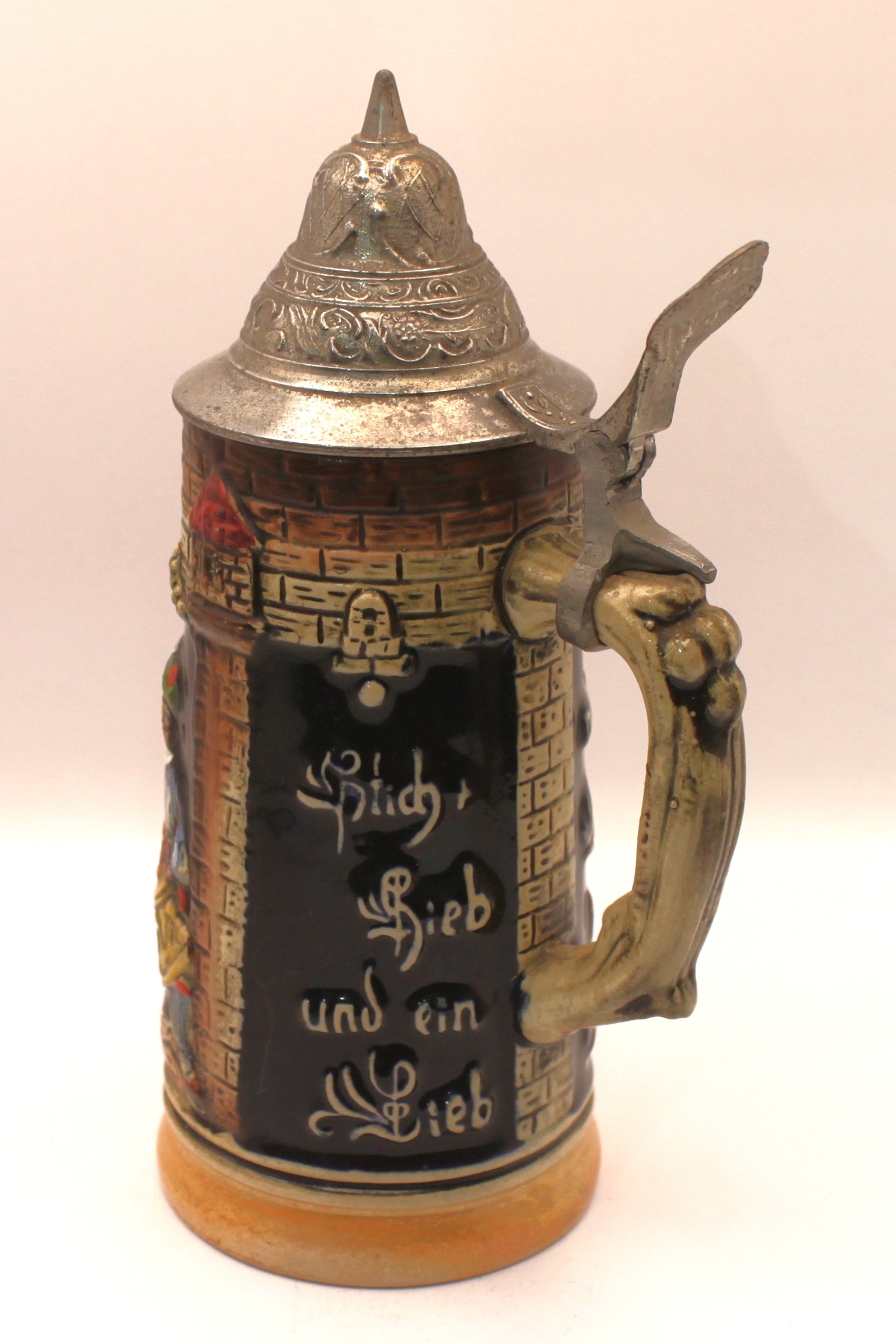 Las jarras cerveceras alemanas de cerámica, conocidas como Steins, Bierkrüge o Humpen, son un símbolo tradicional de la cultura germana. Desde el siglo XVI han acompañado celebraciones y reuniones; son decoradas con relieves de escenas históricas, escudos y motivos folclóricos, y rematadas con su característica tapa metálica.