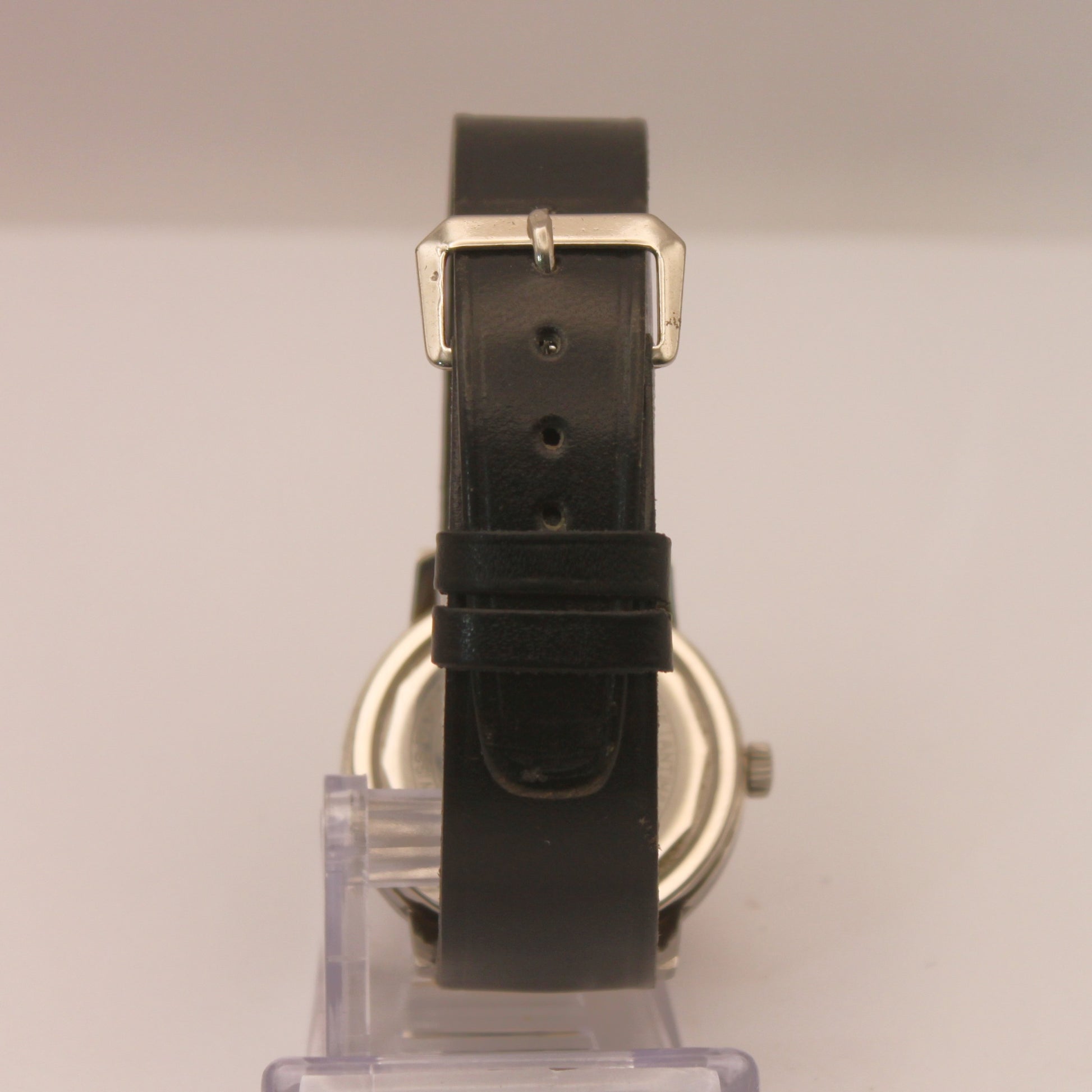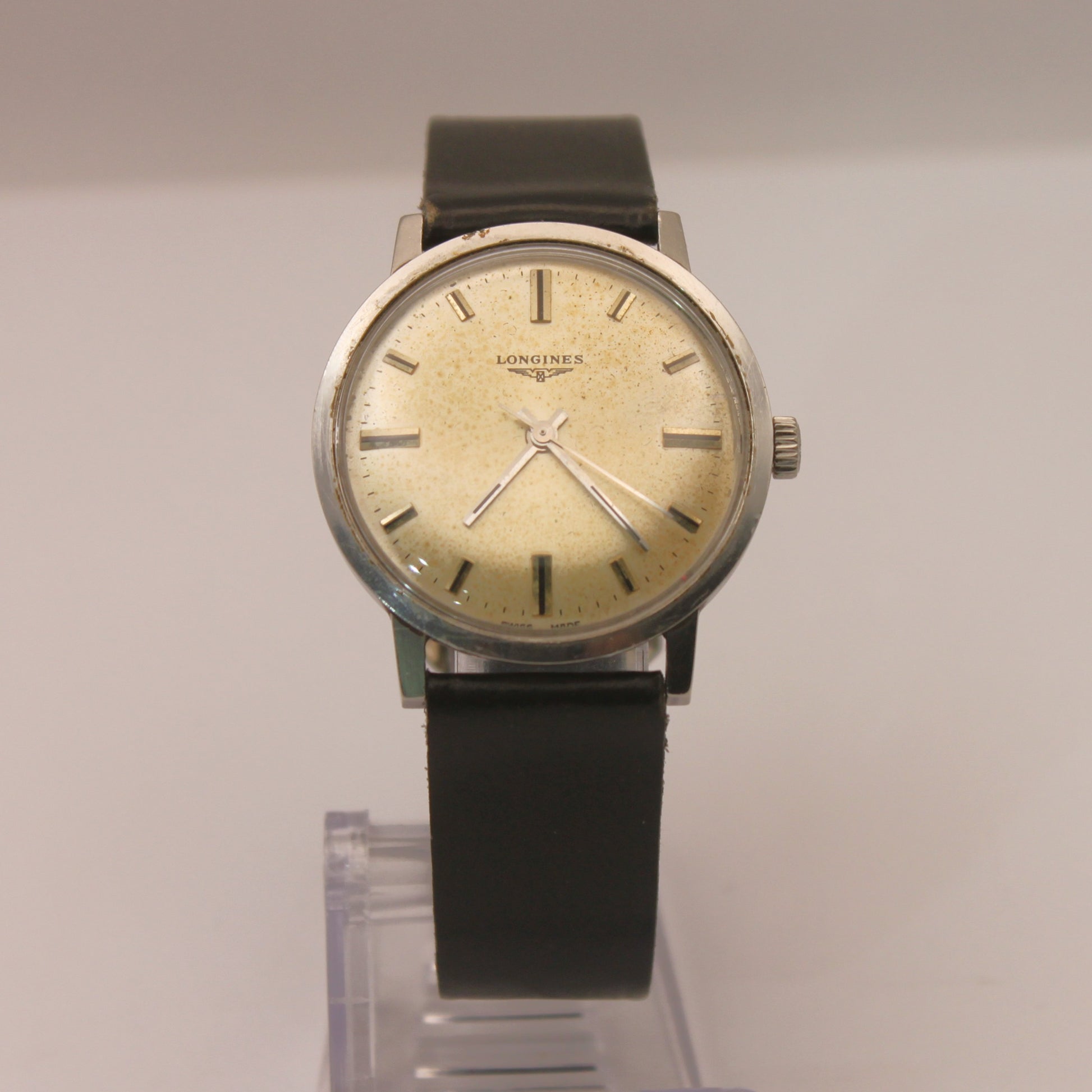 Simpático reloj de pulsera marca Longines, estilo vintage, con mecanismo a cuerda funcional al día de hoy, hecho en acero inoxidable; presenta un segundero central. Su pulsera no es original. Pieza interesante, ideal para coleccionistas.